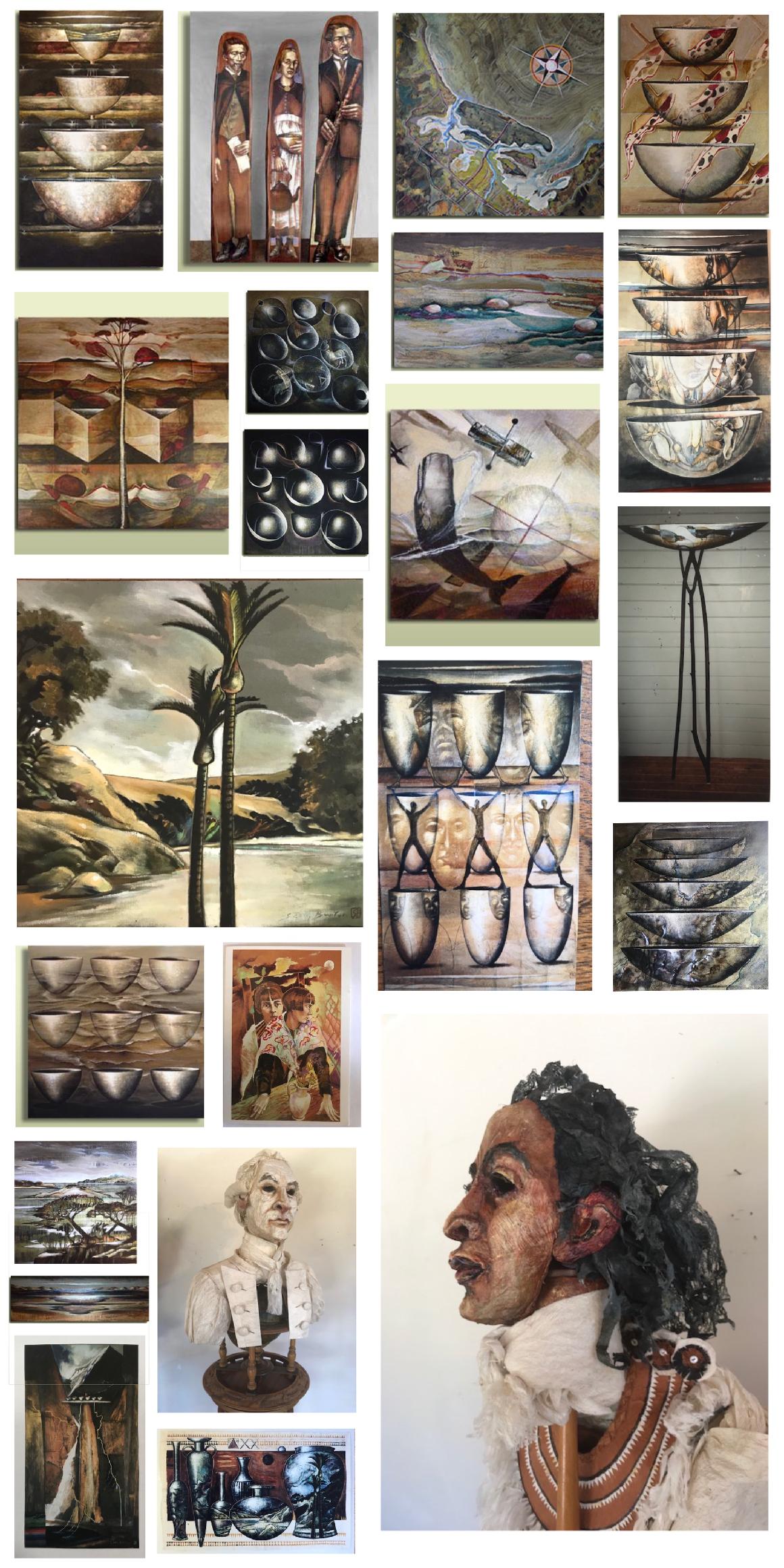 The exhibition was conceived as a revisionist history painting, comprising two and three dimensional elements.